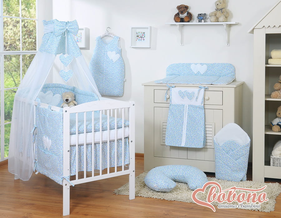 2. Dwa wiszące serduszka z miękkim wypełnieniem to słodkie i niepowtarzalne uzupełnienie kompletu pościeli. Idealnie pasują do aplikacji serduszek znajdujących się na ochraniaczu, przyciągają uwagę dziecka w pierwszych miesiącach życia skutecznie zastępując karuzelkę. Duża gruba kokarda stanowi piękne zwieńczenie całości.