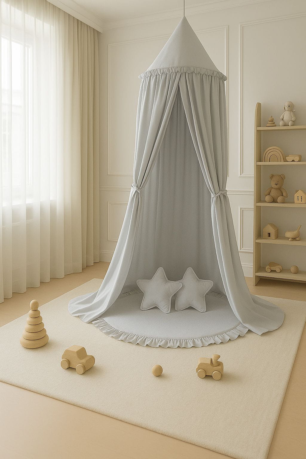 Stwórz magiczną atmosferę w pokoju malucha! Nasz wiszący baldachim do pokoju dziecięcego to nie tylko wyjątkowa dekoracja, ale też praktyczny element wyposażenia, który wprowadzi do wnętrza harmonię, ciepło i bezpieczeństwo.