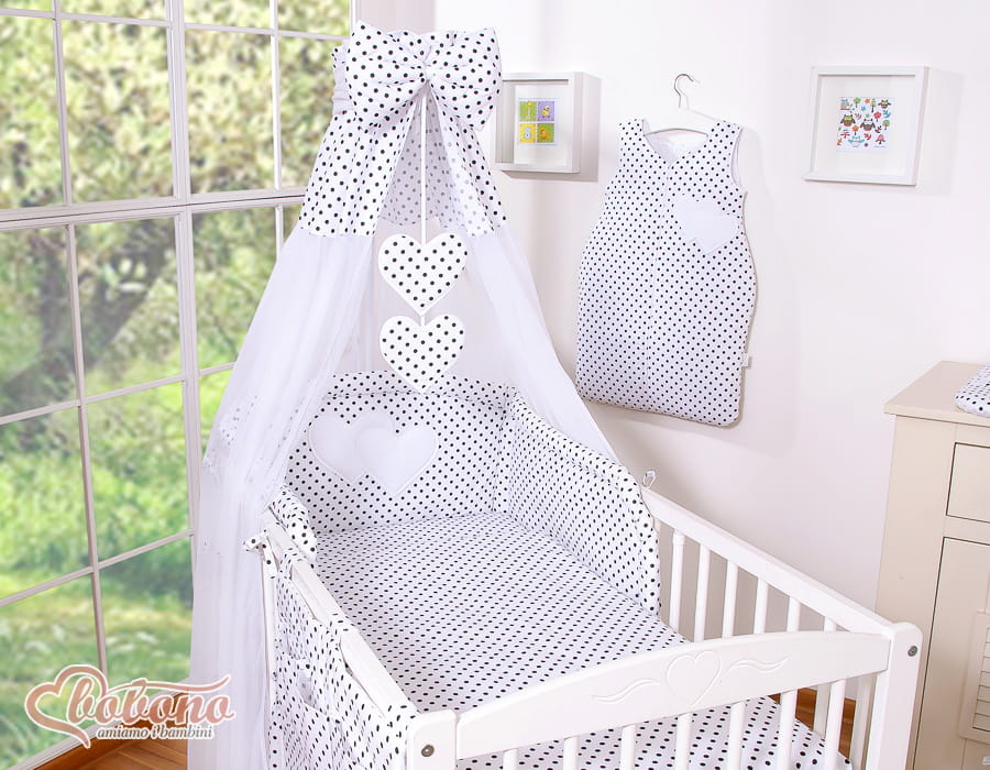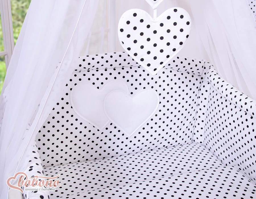 Baldachim z tiulu- Serduszka czarne grochy na białym tle