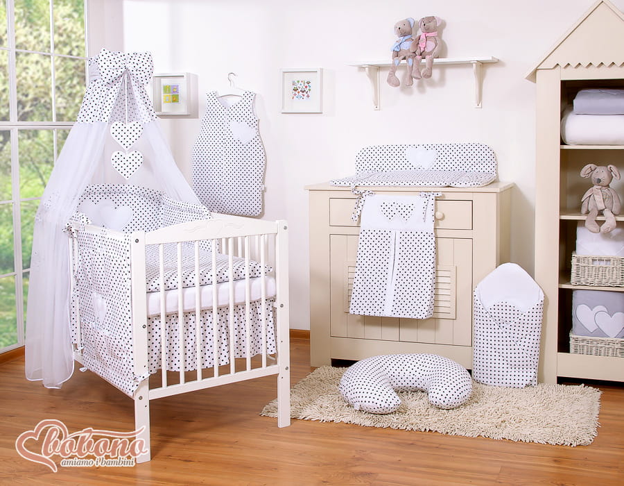 2. Dwa wiszące serduszka z miękkim wypełnieniem to słodkie i niepowtarzalne uzupełnienie kompletu pościeli. Idealnie pasują do aplikacji serduszek znajdujących się na ochraniaczu, przyciągają uwagę dziecka w pierwszych miesiącach życia skutecznie zastępując karuzelkę. Duża gruba kokarda stanowi piękne zwieńczenie całości.