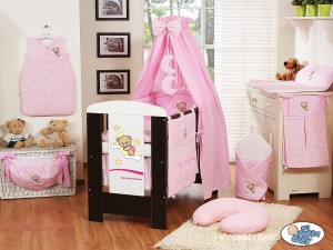 - Duży baldachim bawełniany 160x250 cm - najdłuższy i najszerszy na, dzięki czemu można go ładnie ułożyć wokół łóżeczka, ozdobnie pomarszczyć lub nawet umocować na dłuższym boku łóżeczka. Baldachim jest długi niemal do ziemi, poniżej dolnych szczebelków łóżeczka, nie będzie więc wpadał do wewnątrz nawet przy materacu opuszczonym na najniższym poziomie łóżeczka - jak to się niestety często dzieje przy tańszych pościelach, oszczędnie krojonych. Wykonana z tkaniny 100% bawełnianej, posiadającej atest Okotex lub TUV.