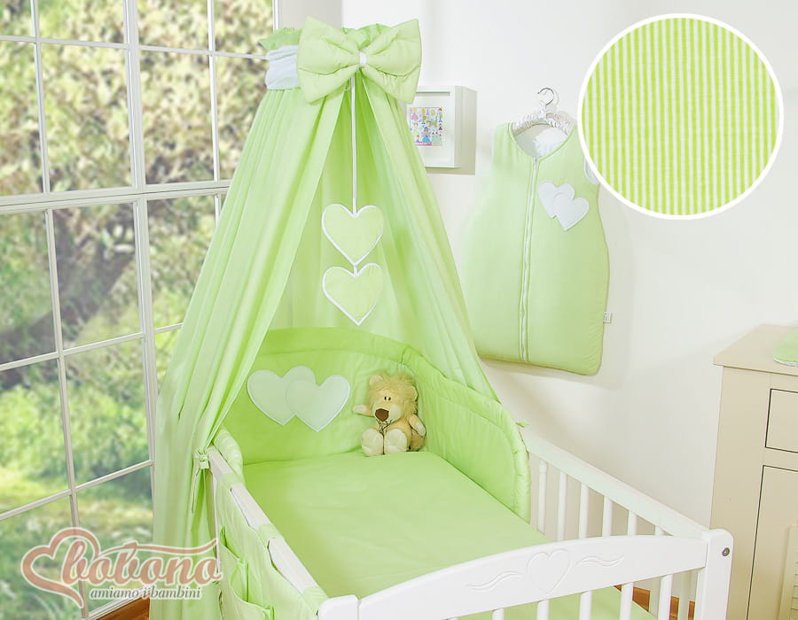 Baldachim z tkaniny- Serduszka paseczki zielone