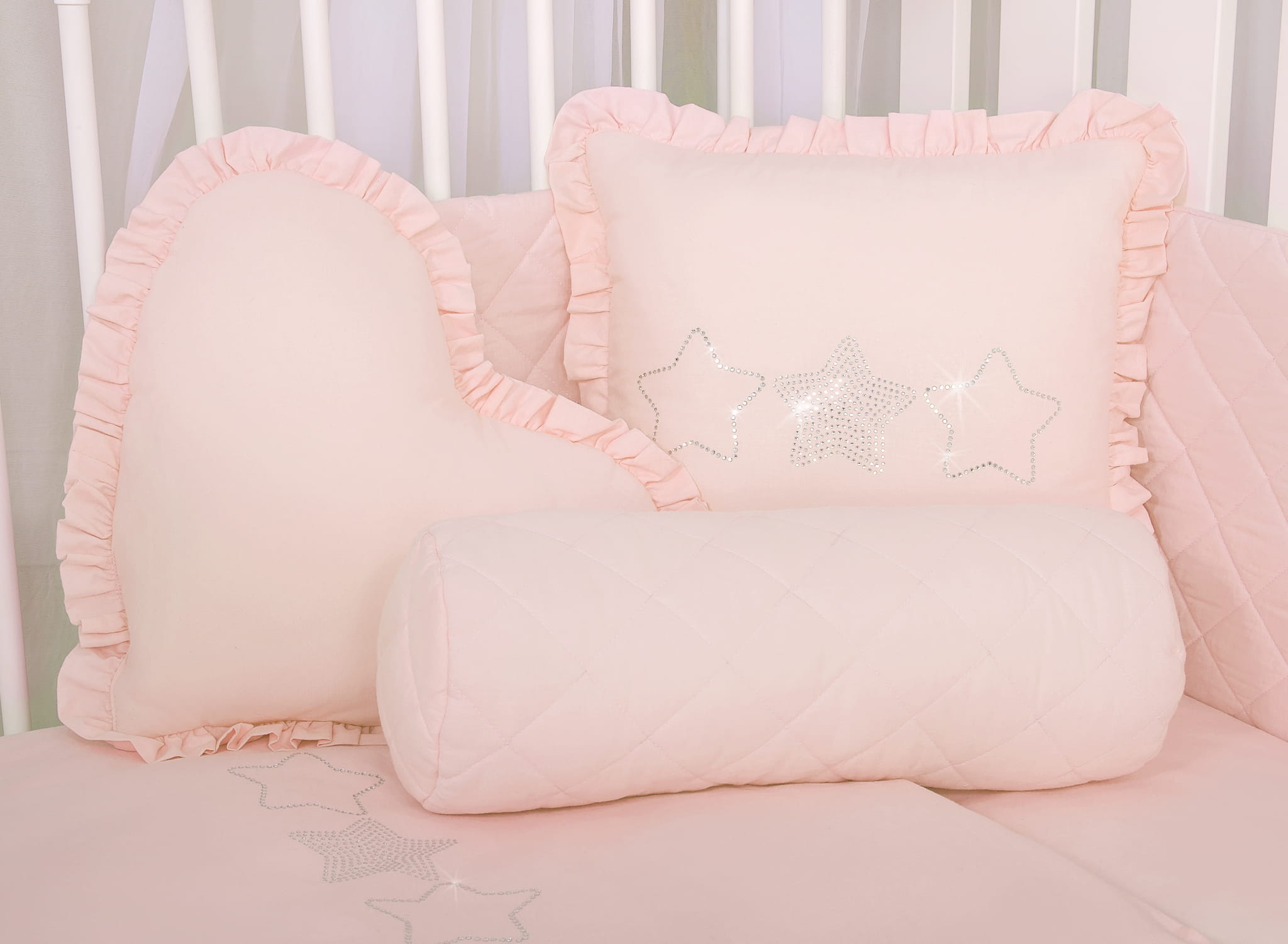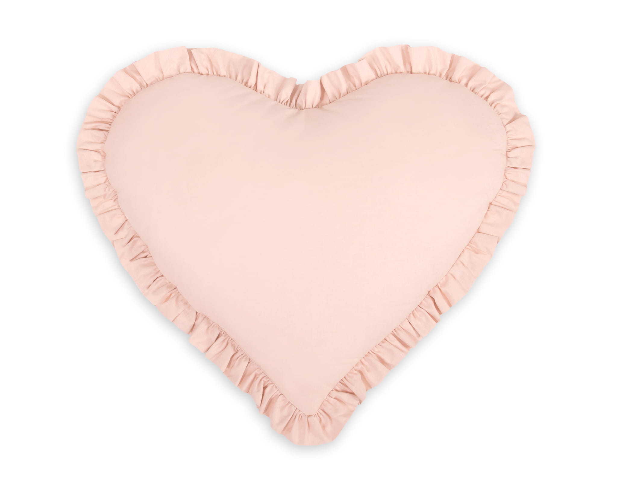 Elegancka poduszka w kształcie serca. Ozdobiona falbanką. Wypełniona tzw. sztucznym puchem, antyalergicznym. Poduszka jest jednokolorowa, wykonana ze 100% tkaniny bawełnianej. Sprawdzi się doskonałe jako dekoracja pokoju dziecięcego. Serduszko stanowi całość- poszewka nie jest rozbieralna. Stanowi piękny komplet z naszymi zestawami pościeli.
