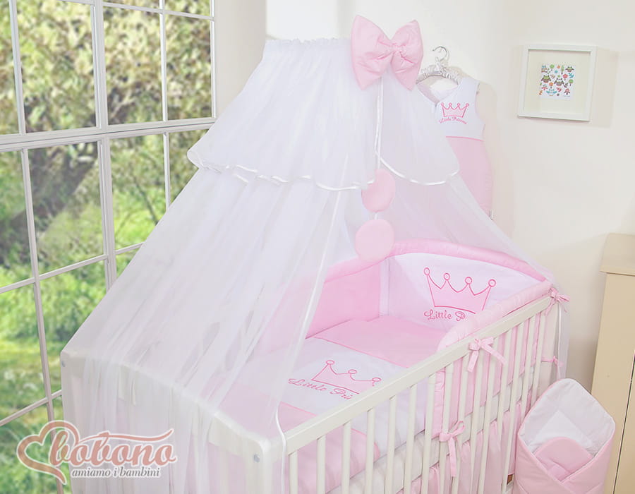 Duża dwufunkcyjna uniwersalna moskitiera, z dodatkowym zabezpieczeniem wnętrza łóżeczka. Chroni maluszka, a także wygląda na łóżeczku niezwykle ozdobnie.