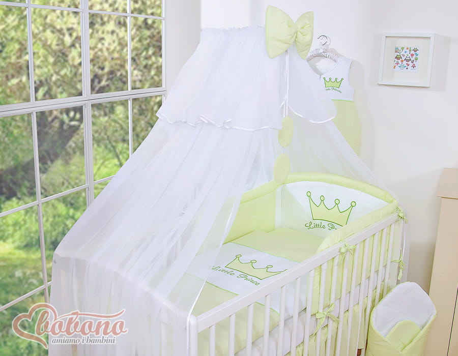 Duża dwufunkcyjna uniwersalna moskitiera, z dodatkowym zabezpieczeniem wnętrza łóżeczka. Chroni maluszka, a także wygląda na łóżeczku niezwykle ozdobnie.