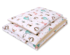 Dwustronna pościel dla dzieci 2-częściowa bawełniana - beżowe liski/beż