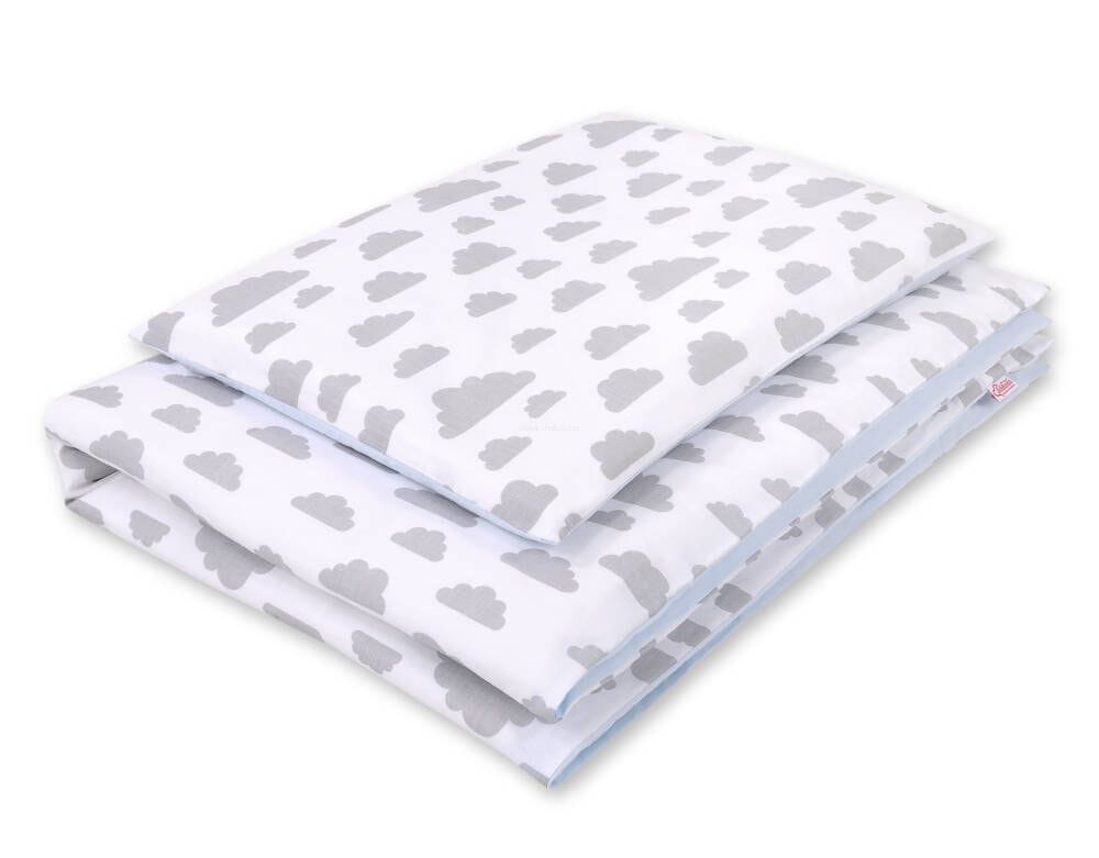Dwustronna pościel dla dzieci 2-częściowa bawełniana - chmurki szare/niebieski