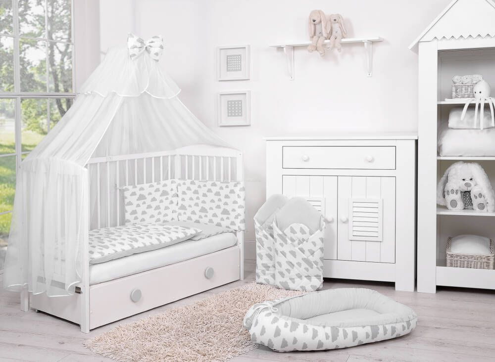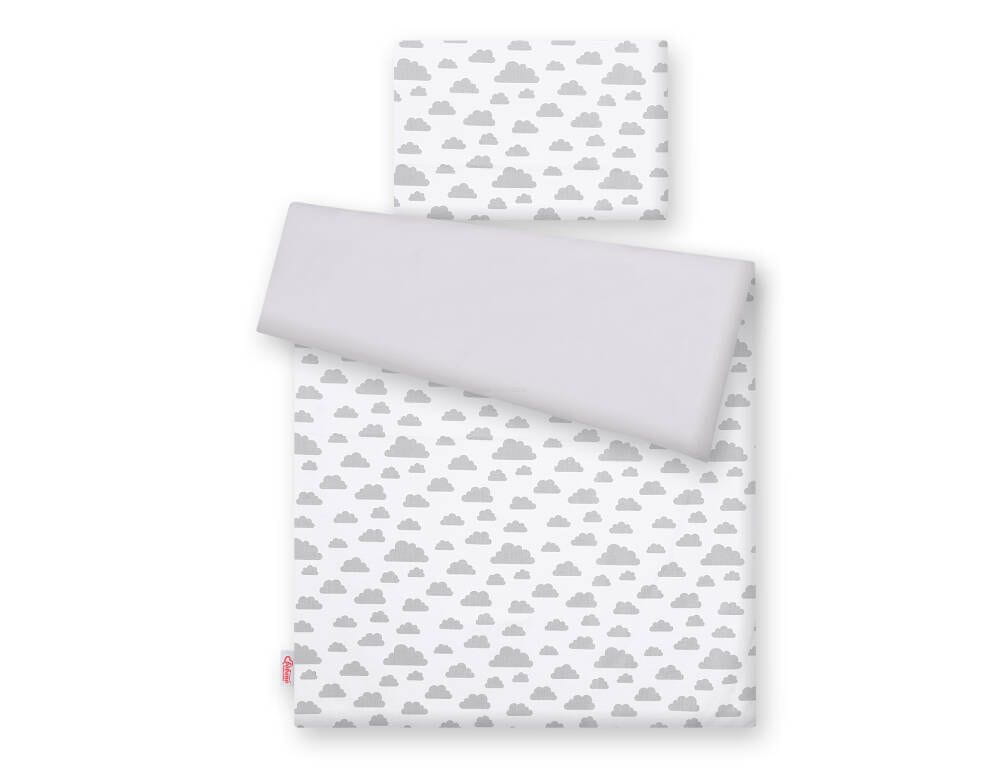Dwustronna pościel dla dzieci 2-częściowa bawełniana - chmurki szare/szary