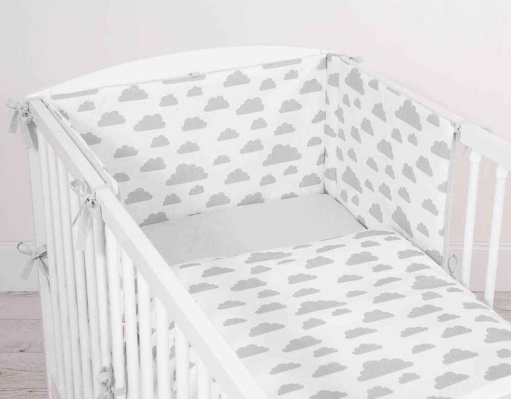Dwustronna pościel dla dzieci 2-częściowa bawełniana - chmurki szare/szary
