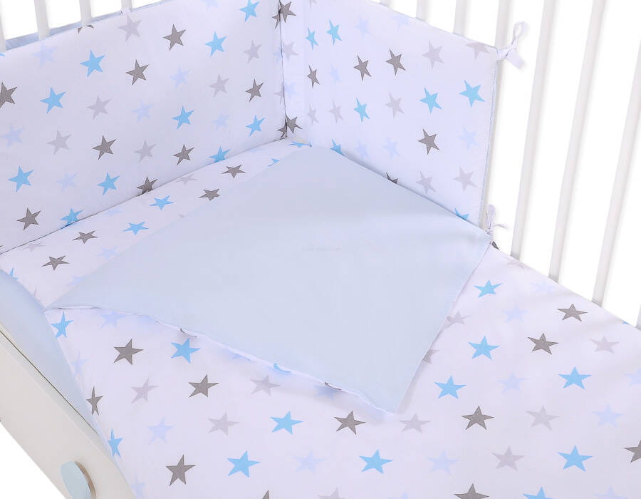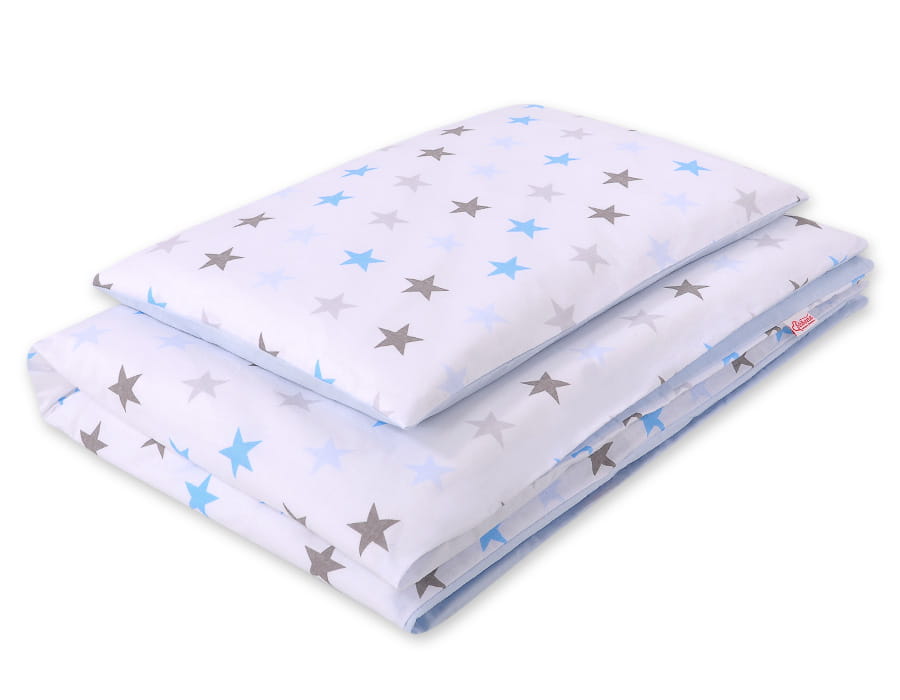 Dwustronna pościel dla dzieci 2-częściowa bawełniana - gwiazdki szaro-niebieskie