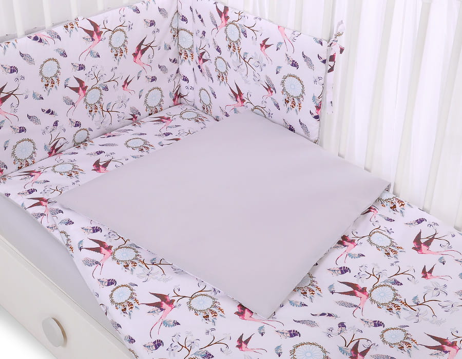Dwustronna pościel dla dzieci 2-częściowa bawełniana - jaskółki różowe