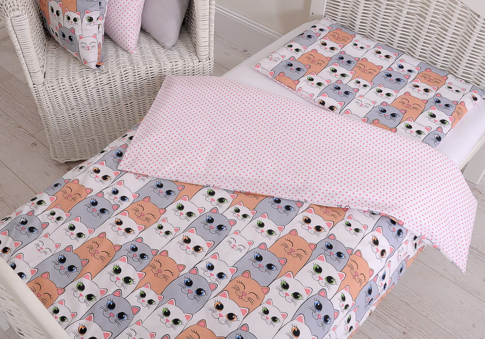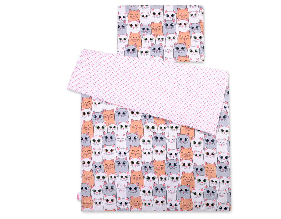 Dwustronna pościel dla dzieci 2-częściowa bawełniana - koty szaro-różowe