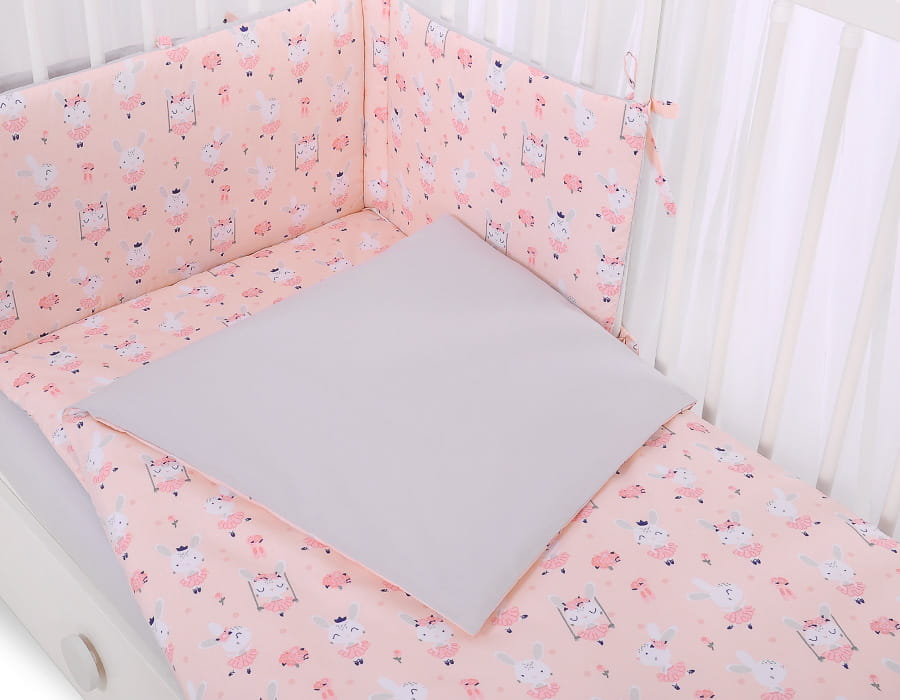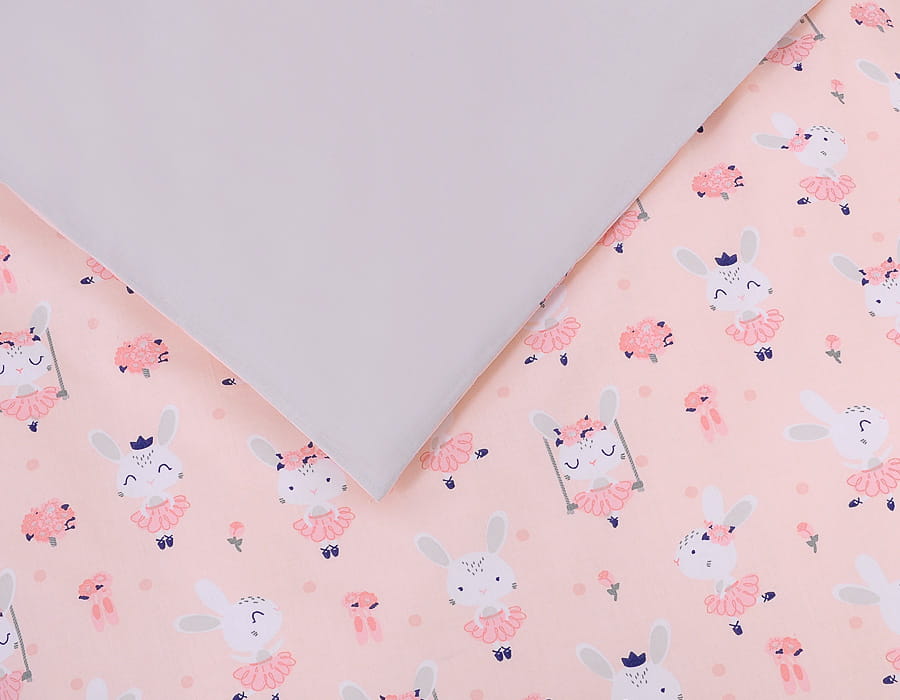 Dwustronna pościel dla dzieci 2-częściowa bawełniana - króliczki baletnice różowe