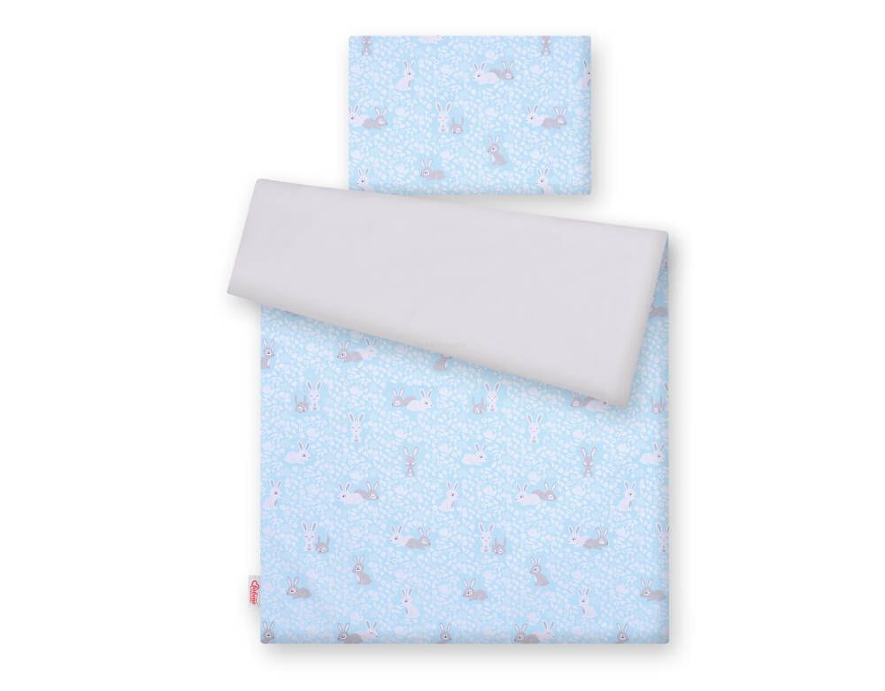 Dwustronna pościel dla dzieci 2-częściowa bawełniana - króliczki niebieskie/szary
