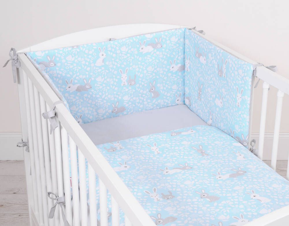 Dwustronna pościel dla dzieci 2-częściowa bawełniana - króliczki niebieskie/szary