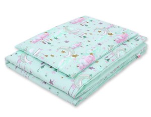 Dwustronna pościel dla dzieci 2-częściowa bawełniana - księżyce miętowe