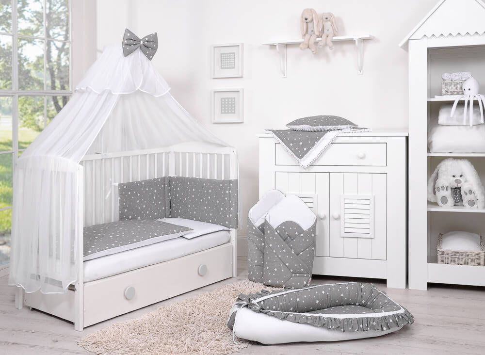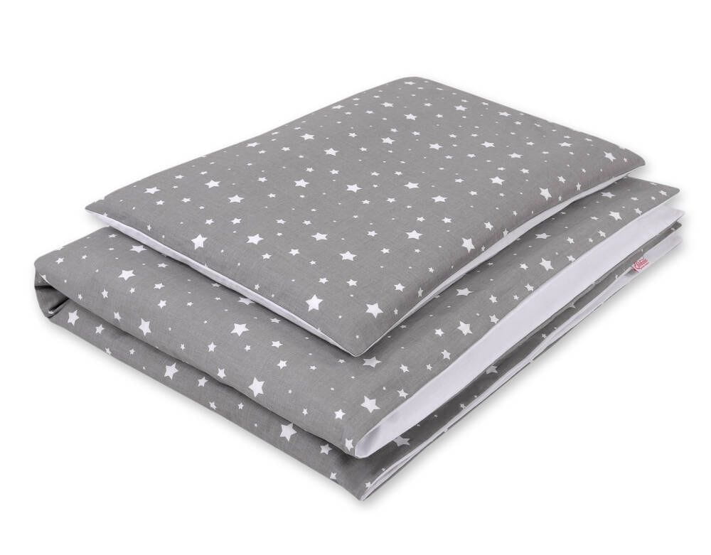Dwustronna pościel dla dzieci 2-częściowa bawełniana - mini gwiazdki białe na szarym/biały