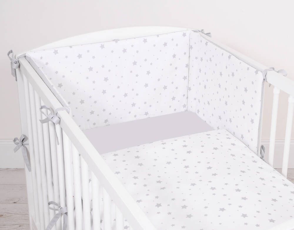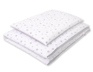 Dwustronna pościel dla dzieci 2-częściowa bawełniana - mini gwiazdki szare na białym tle/szary