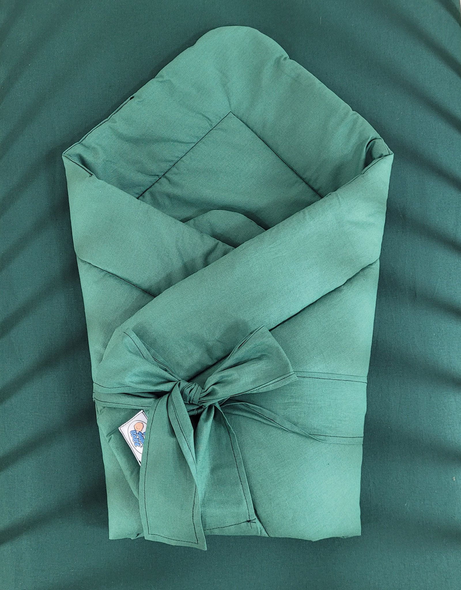 Dwustronny rożek dla niemowląt miękki bawełniany z wiązaniem - butelkowa zieleń