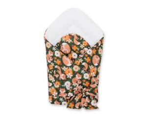 Dwustronny rożek dla niemowląt miękki z wiązaniem - lisia rodzinka na zieleni