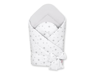 Dwustronny rożek dla niemowląt miękki z wiązaniem - mini gwiazdki szare na białym tle