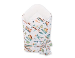 Dwustronny rożek dla niemowląt miękki z wiązaniem - pociąg turkusowy