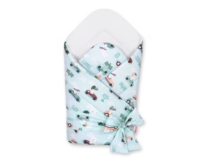 Dwustronny rożek dla niemowląt miękki z wiązaniem - zajączki miętowe/ biały