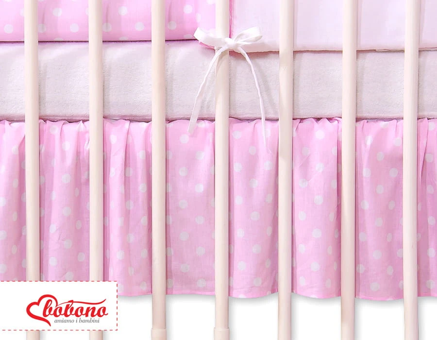 Oryginalna ozdoba, mocno marszczona falbanka do łóżeczka i piękne uzupełnienie pościeli.