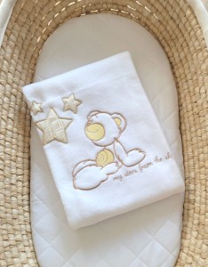 Kocyk polarowy dla niemowląt - Carlo- Miś z gwiazdkami biały