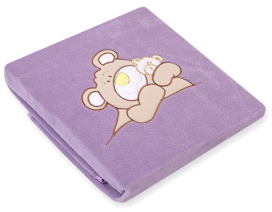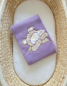 Kocyk polarowy dla niemowląt - Miś Barnaba fioletowy