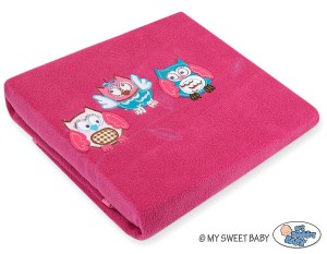 Kocyk polarowy dla niemowląt - Sowy Bigi Zibi & Adele- Ciemnoróżowy