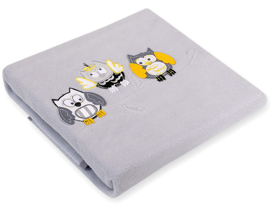 Kocyk polarowy dla niemowląt - Sowy Bigi Zibi & Adele- szaro-żółte