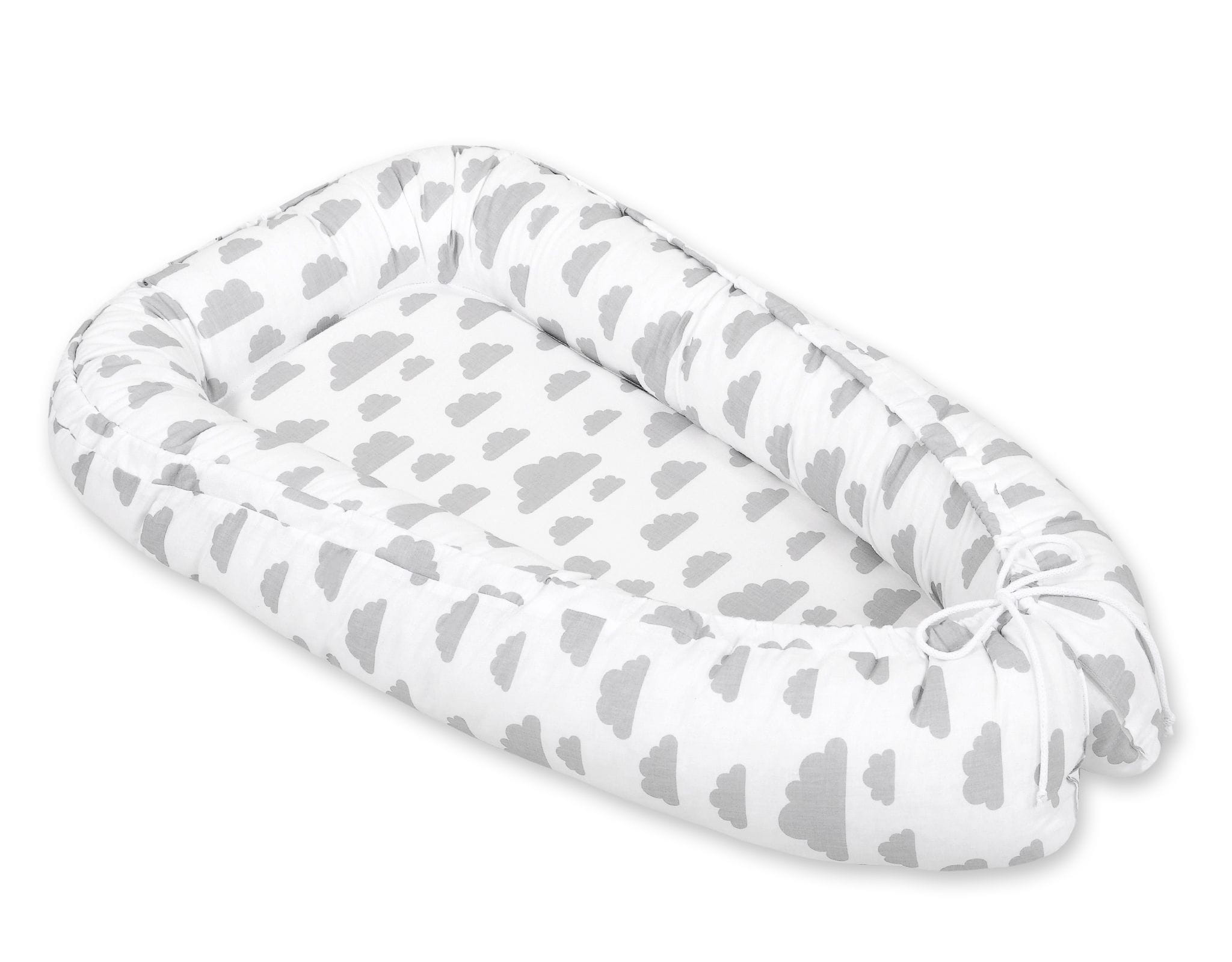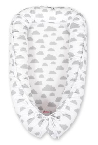 Kokon niemowlęcy dwustronny kojec otulacz Premium BOBONO- chmurki szare