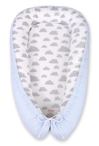 Kokon niemowlęcy dwustronny kojec otulacz Premium BOBONO- chmurki szare/niebieski