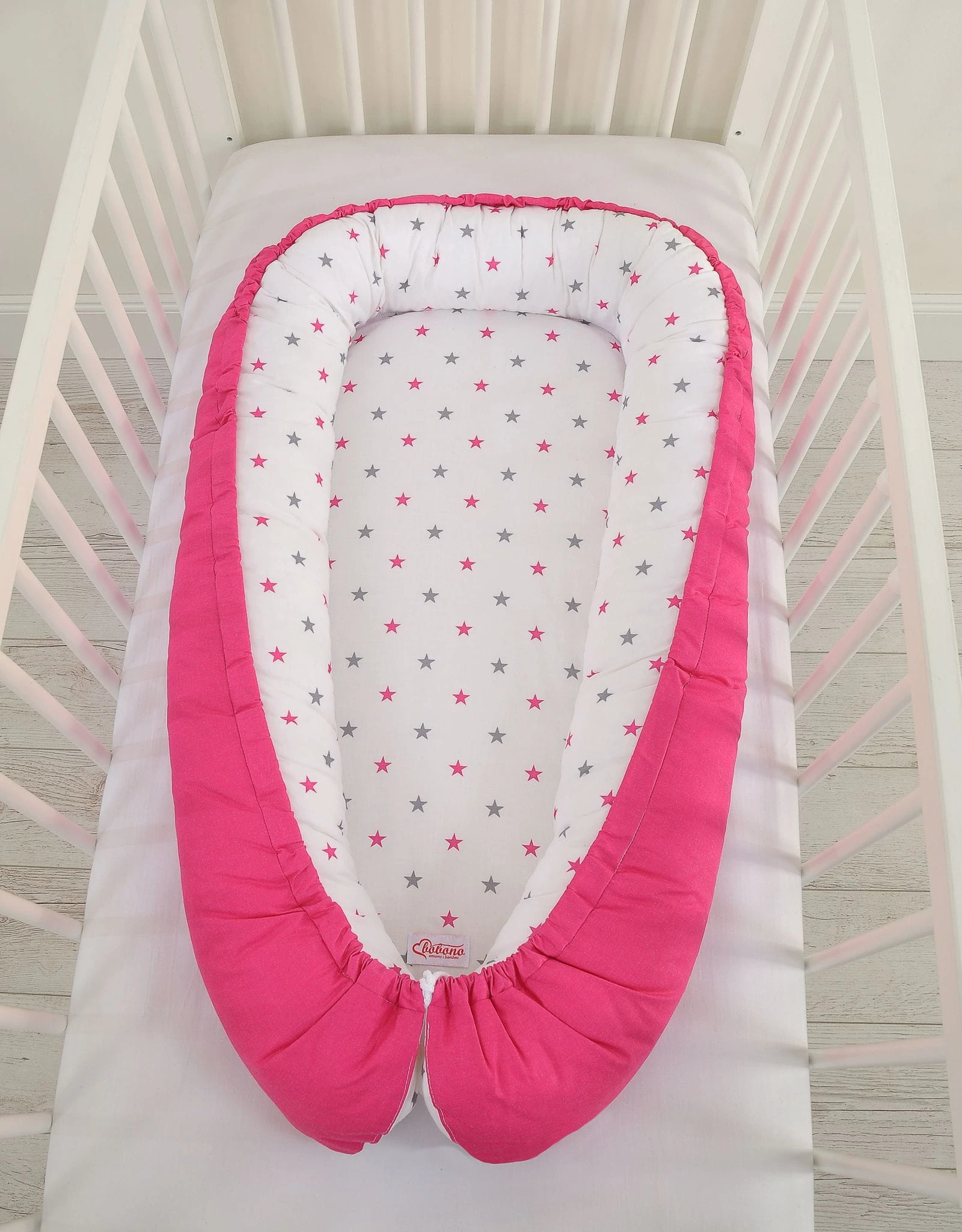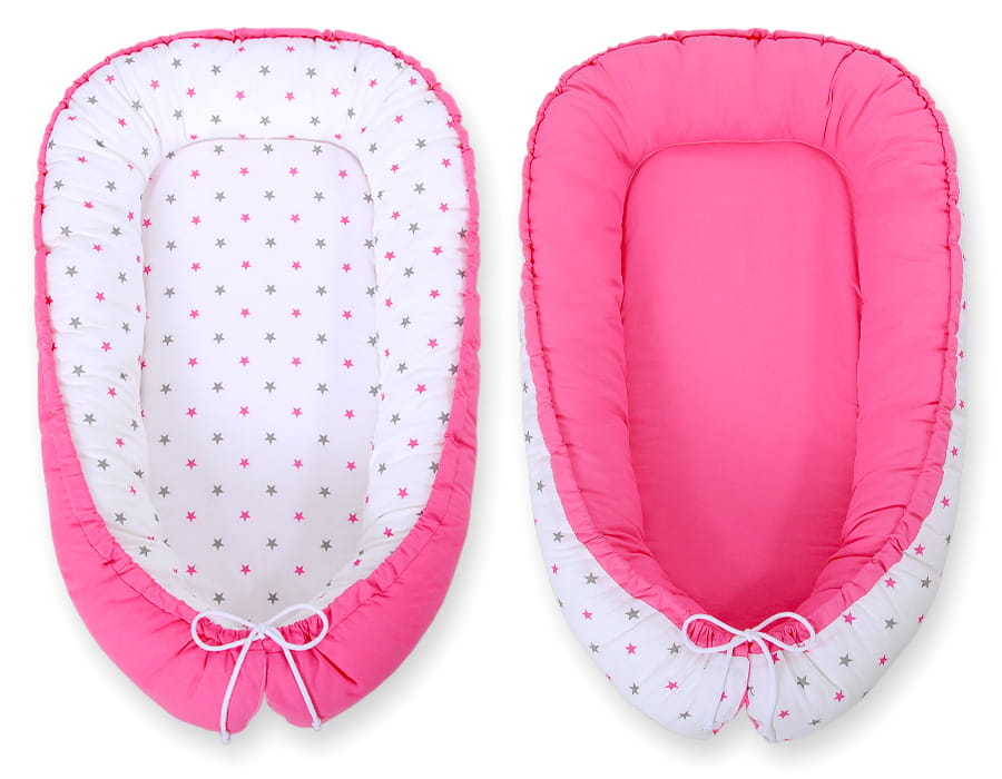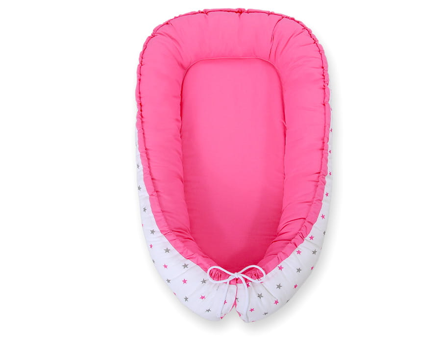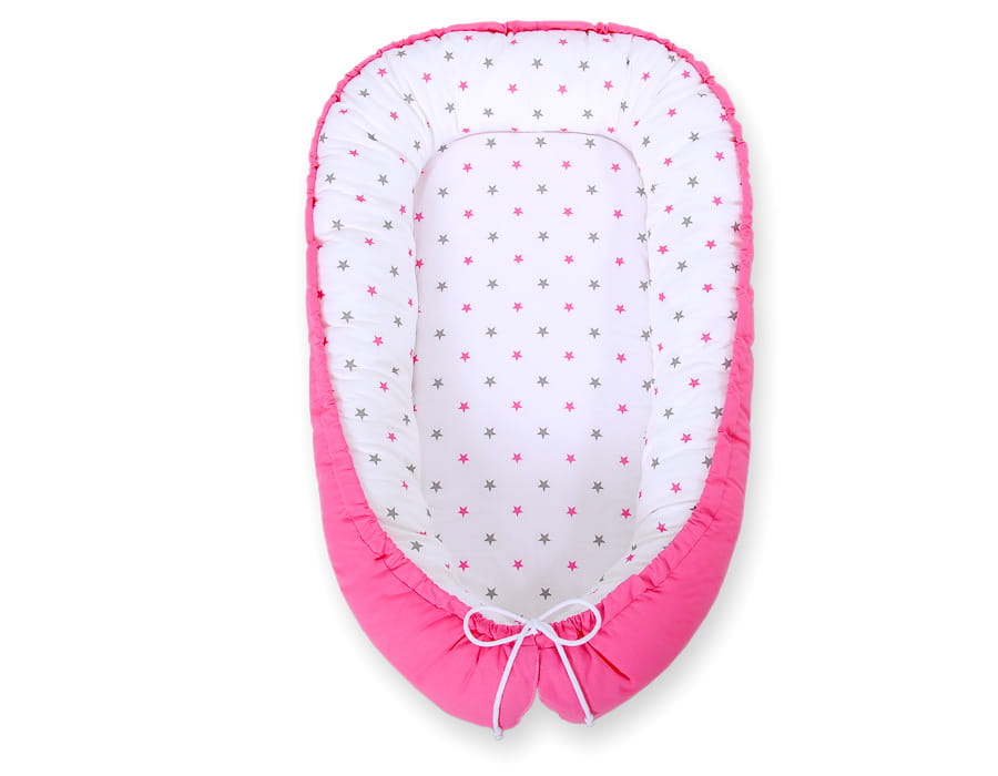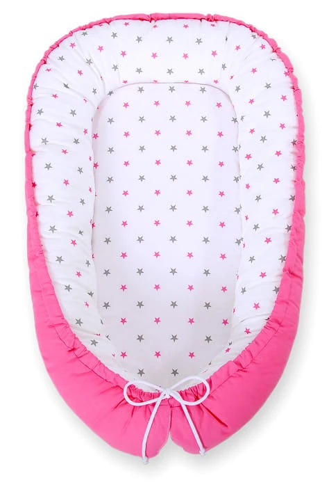 Kokon niemowlęcy dwustronny kojec otulacz Premium BOBONO- gwiazdki szaro-różowe / róż