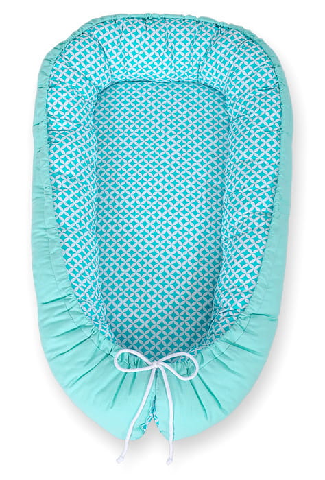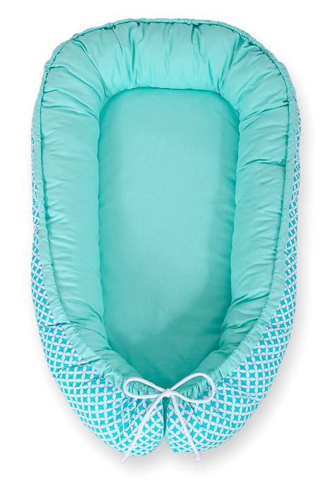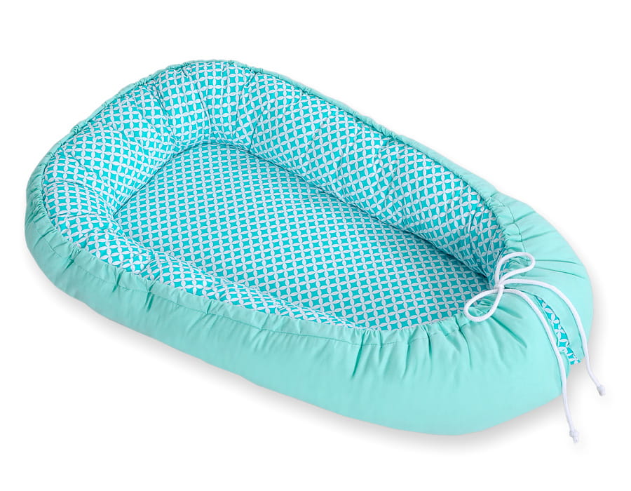 Kokon niemowlęcy dwustronny kojec otulacz Premium BOBONO- mini-rozeta miętowa
