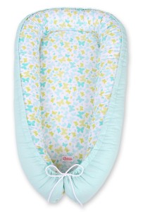 Kokon niemowlęcy dwustronny kojec otulacz Premium BOBONO- motylki niebieskie/ mięta