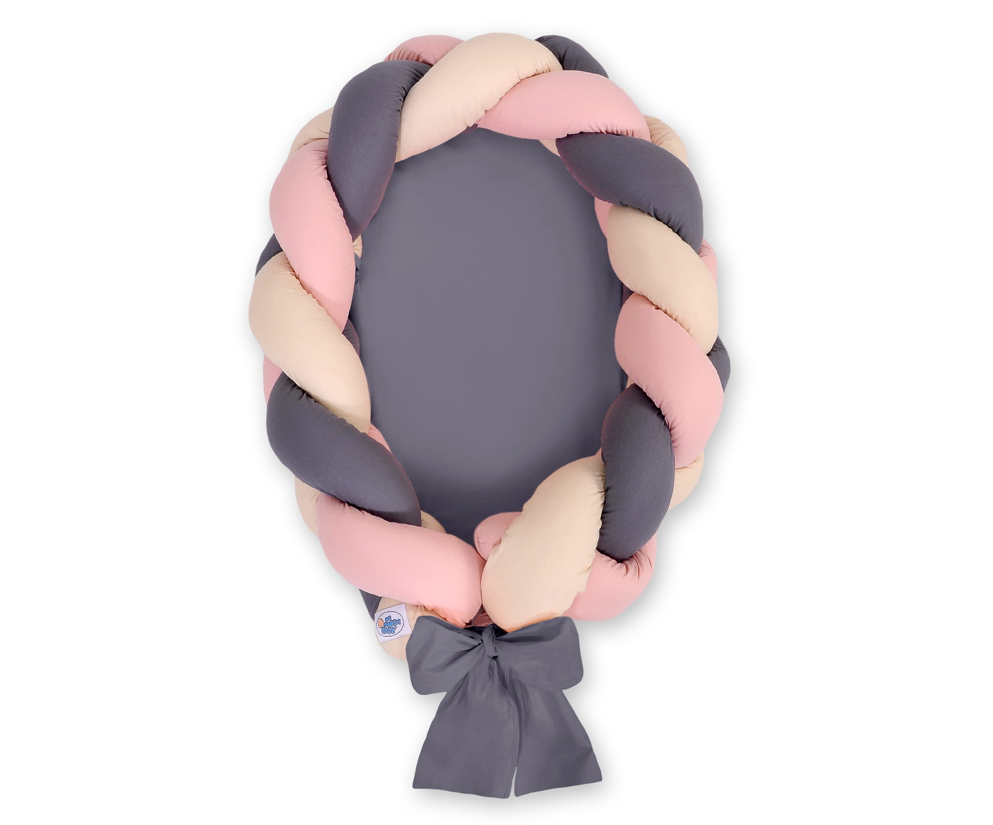 Pleciony warkocz przymocowany jest do materacyka specjalnymi troczkami, co pozwala łatwo uformować sobie gniazdko i położyć w nim Maluszka.