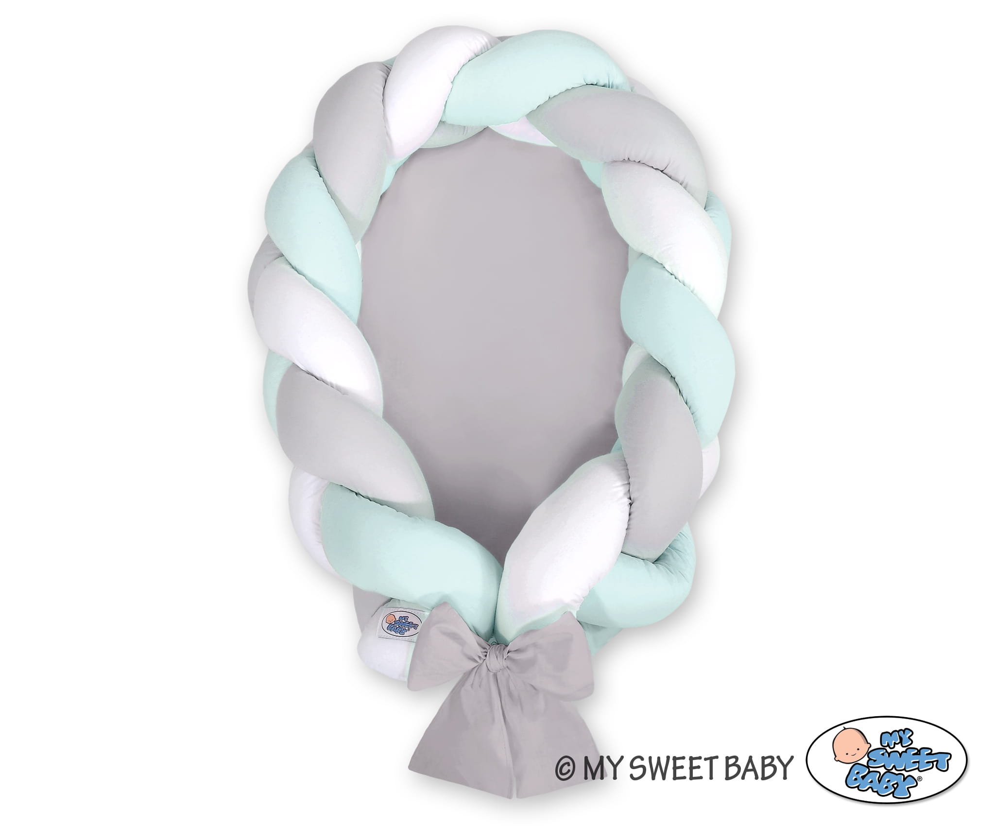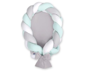 Kokon niemowlęcy pleciony 2 w 1 - biało-szaro-miętowy