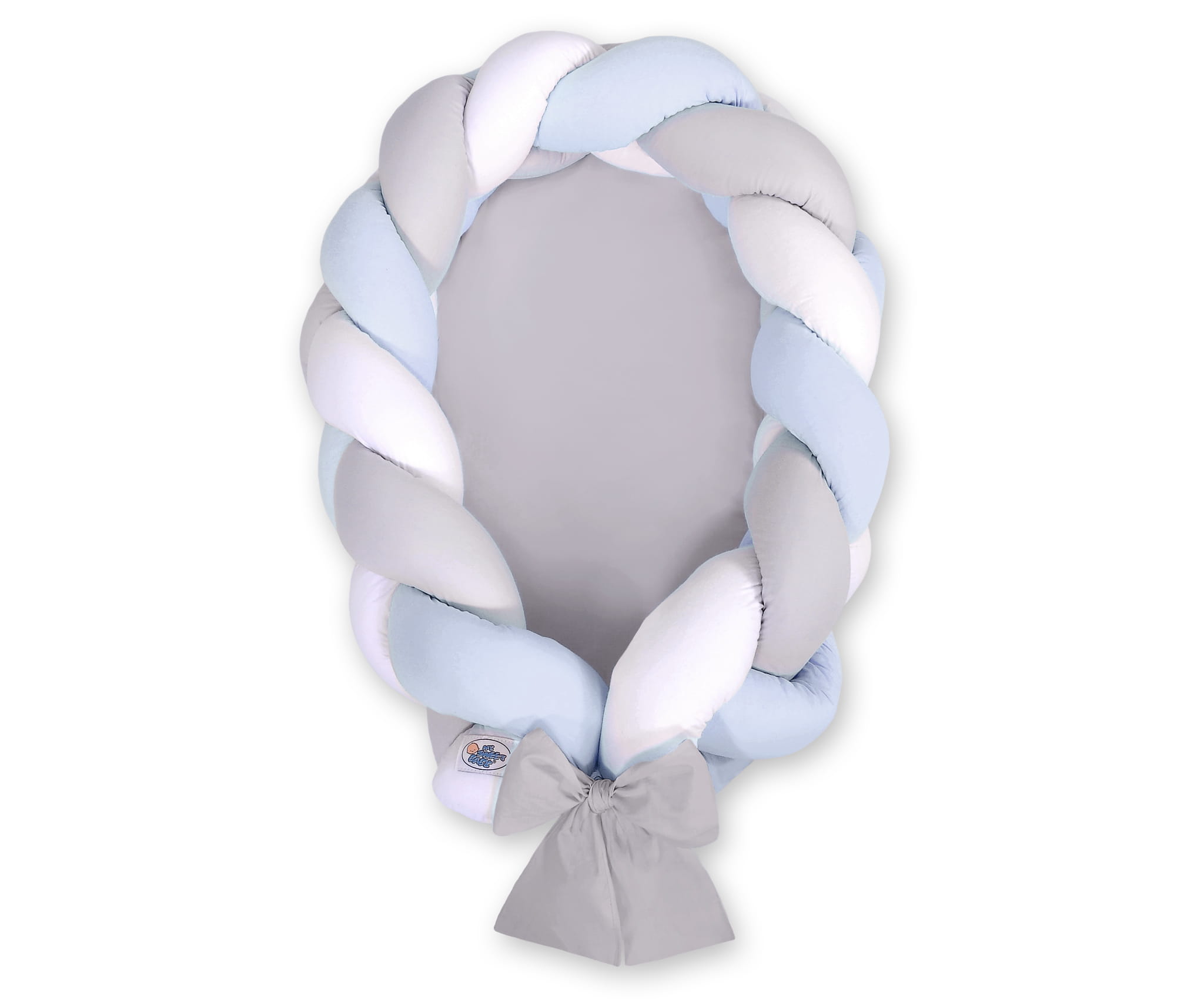 Kokon niemowlęcy pleciony 2 w 1 - biało-szaro-niebieski