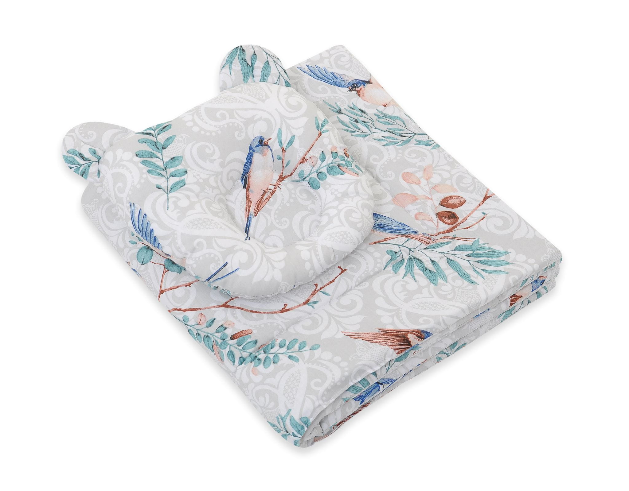 Kołderka z wypełnieniem i poduszka profilowana Miś - zestaw 2cz. - Blue birds