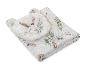 Kołderka z wypełnieniem i poduszka profilowana Miś - zestaw 2cz. - Brown birds