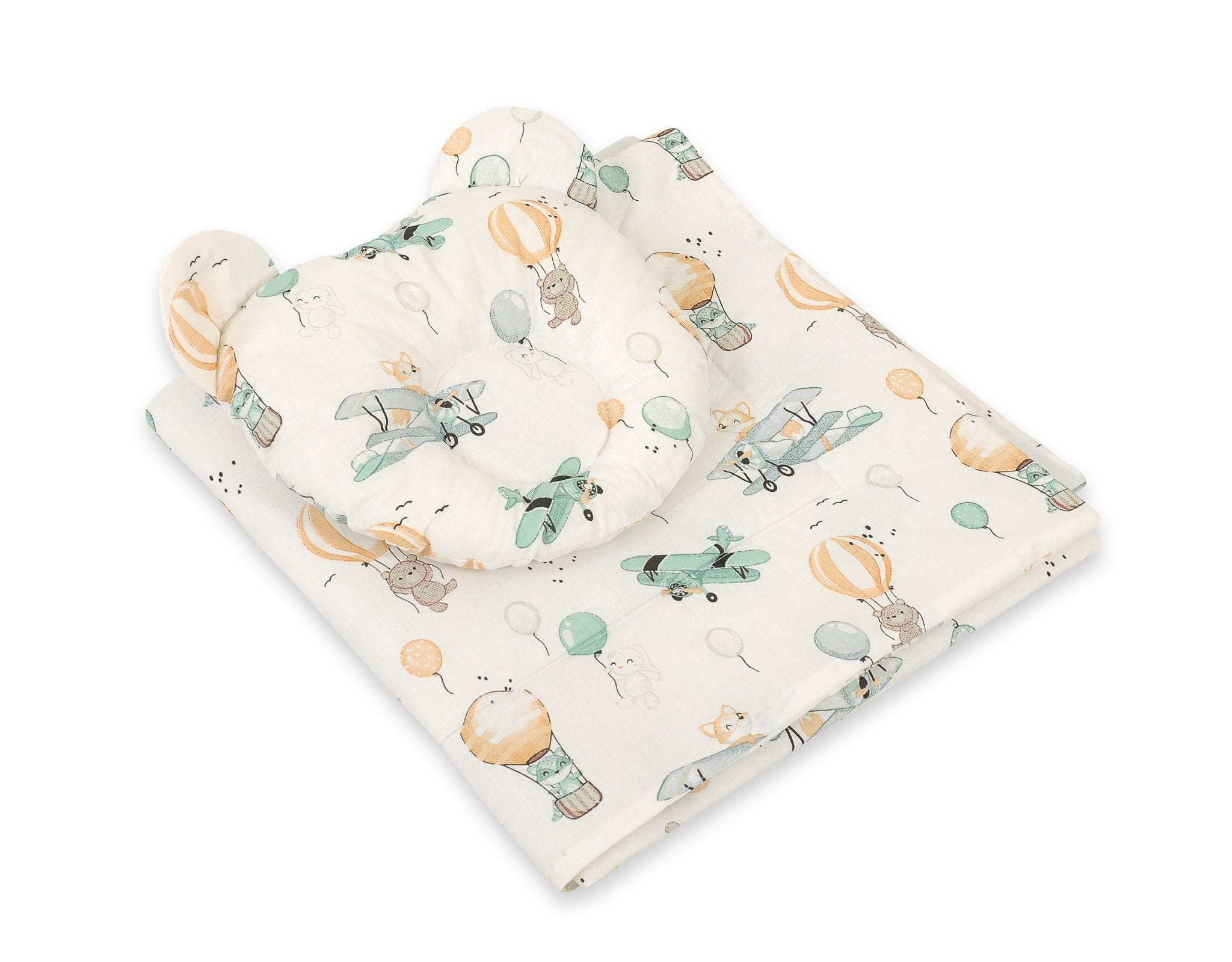 Kołderka z wypełnieniem i poduszka profilowana Miś - zestaw 2cz. - sky adventure
