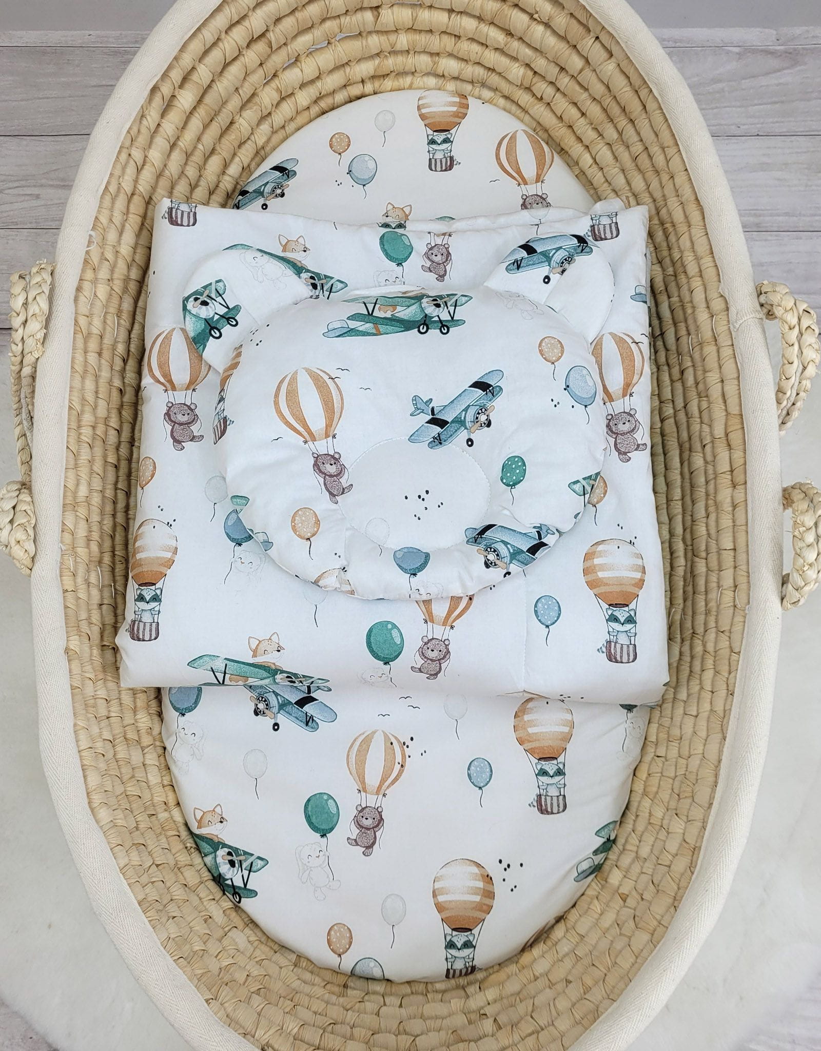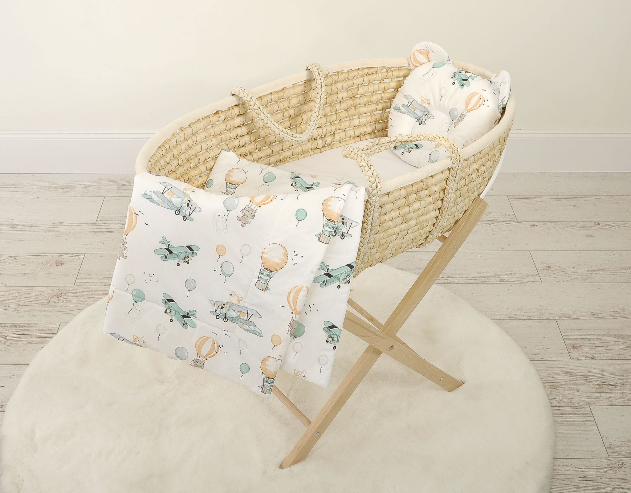 Pościel niemowlęca do gondoli wózka, kosza Mojżesza lub łóżeczka. Wykonana z trwałej 100% atestowanej bawełny. Jest miła i przyjemna w dotyku. Nie podrażnia delikatnej skóry dziecka.