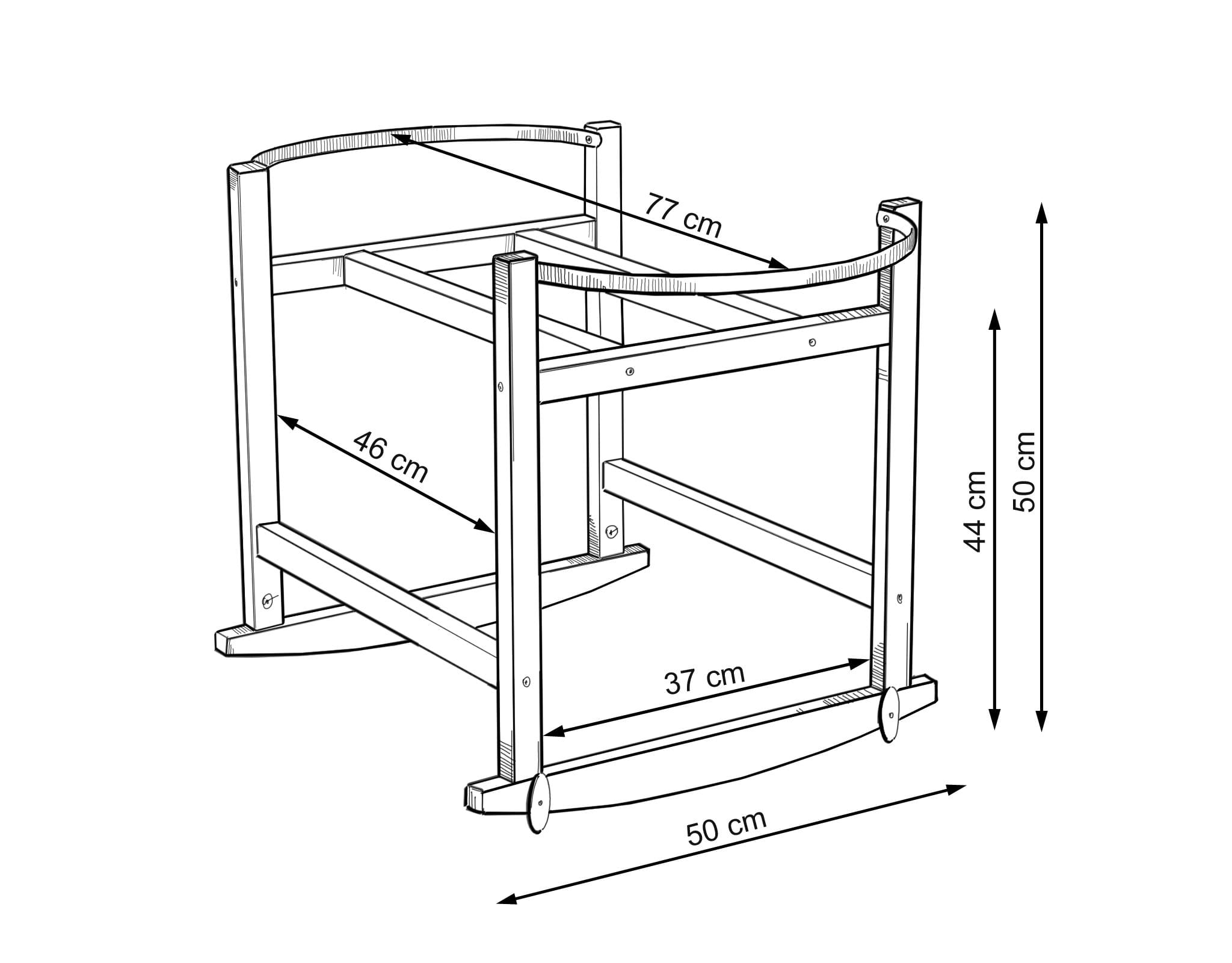 Kołyska zaprojektowana do koszy Mojżesza BOHO marki My Sweet Baby, ale będzie pasowała również do innych koszy Mojżesza o wymiarach: