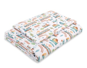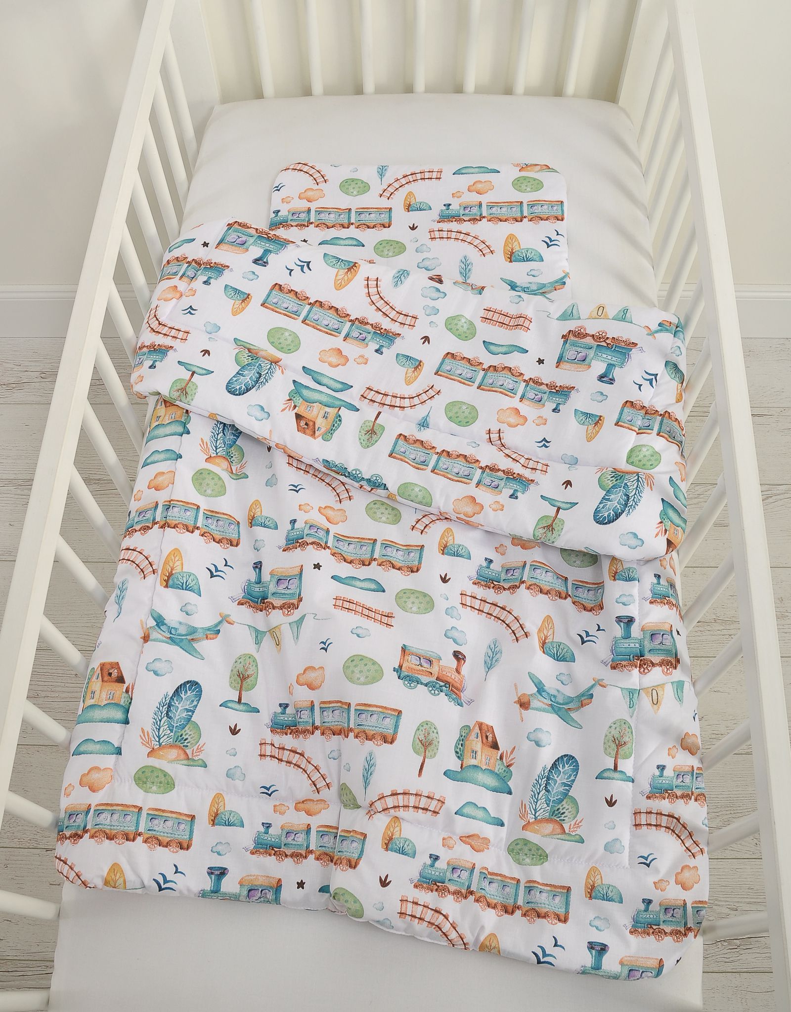 Komplet pościeli dla dzieci z wypełnieniem 120x90cm - pociąg turkusowy