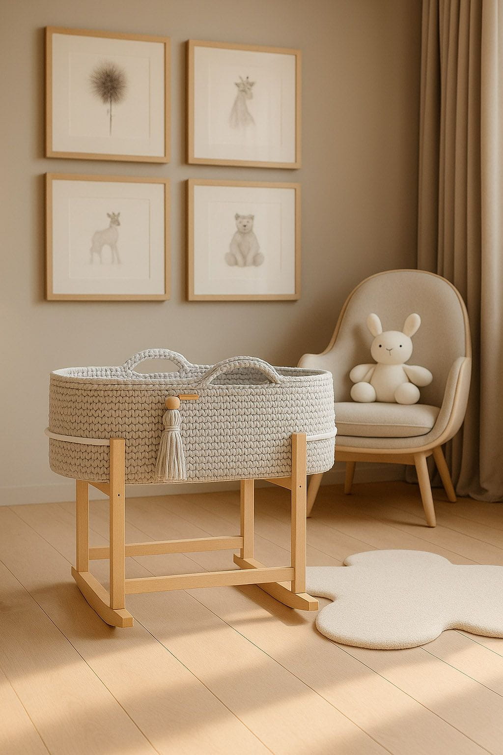 Stwórz ciepłe i bezpieczne miejsce dla swojego maleństwa. Kosz Mojżesza BOHO z kołyską to połączenie naturalnych materiałów, ręcznej pracy i troski o każdy szczegół.