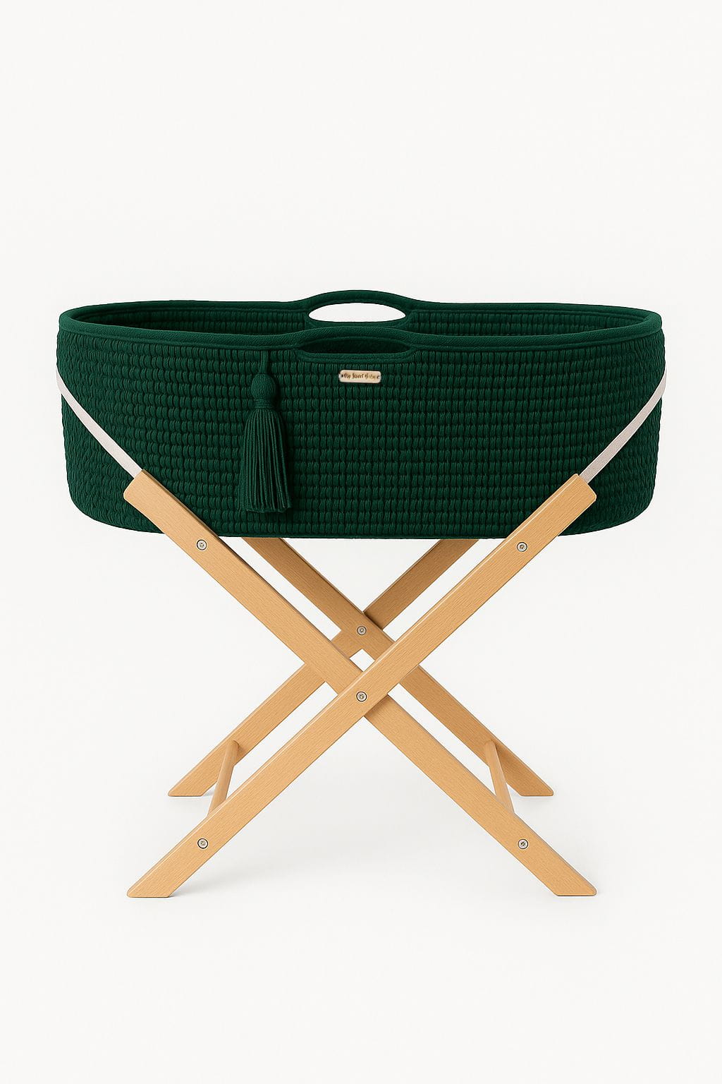 Kosz Mojżesza BOHO Handmade ze stojakiem - butelkowa zieleń
