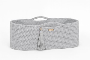 Kosz wykonany jest ręcznie ze sznurka bawełnianego. Miękkie wygodne pierwsze łóżeczko dla noworodka. Dzięki niewielkim wymiarom kosz Mojżesza może towarzyszyć rodzicom w każdym pokoju. Bawełniany sznurek z którego wypleciony jest kosz jest miękki, delikatny, a równocześnie bardzo stabilny. Ścieg szydełkowy wykorzystany w koszu jest lekko ażurowy, dzięki czemu zapewniona jest odpowiednia cyrkulacja powietrza. Dzięki uchwytom kosz Mojżesza można w łatwy sposób przenosić i mieć malucha zawsze blisko siebie.