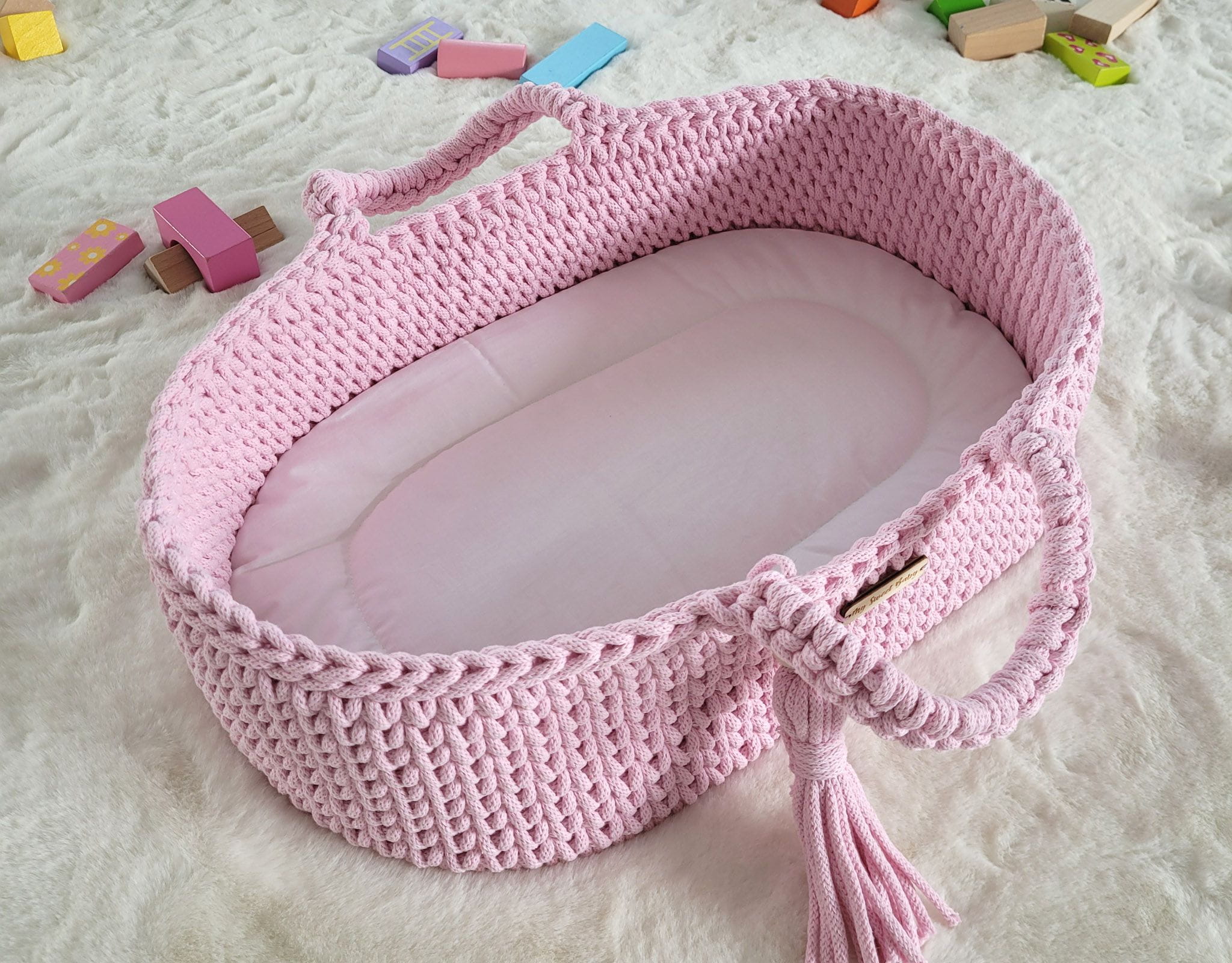 Kosz Mojżesza BOHO dla lalek – handmade, 100% bawełna